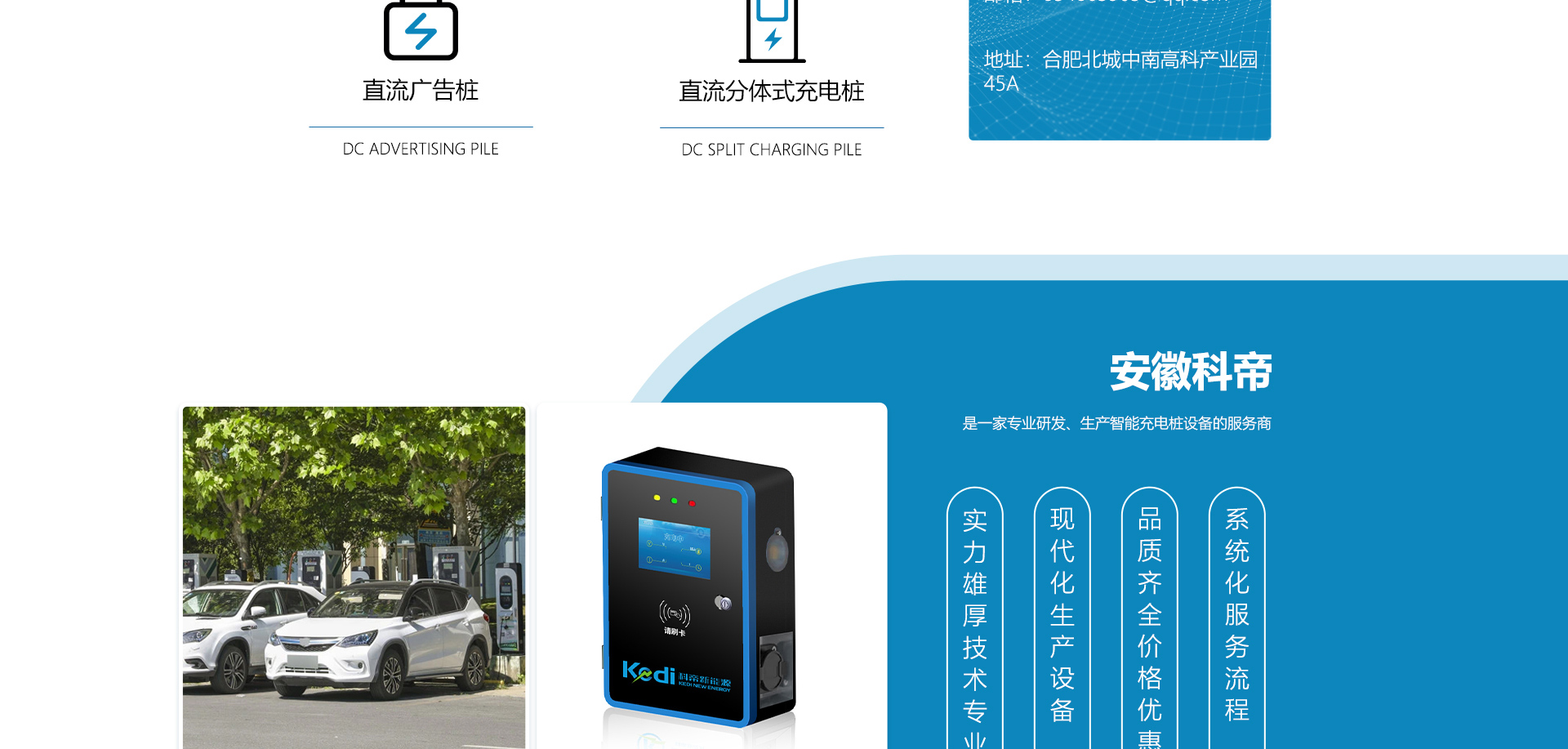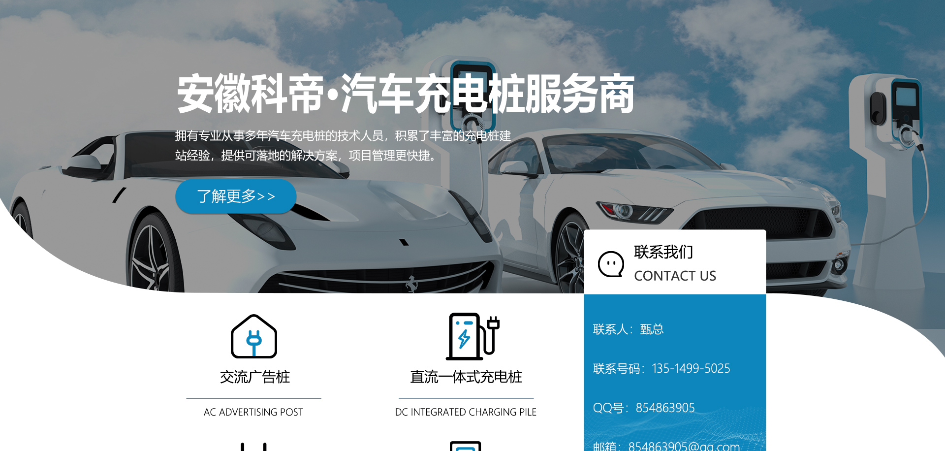 關(guān)于我們安徽科帝新能源科技有限公司坐落于安徽省會(huì)-合肥,是一家研發(fā)、生產(chǎn)智能充電樁設(shè)備,汽車(chē)充電站后臺(tái)監(jiān)控管理系統(tǒng)和生產(chǎn)高壓開(kāi)關(guān)設(shè)備的企業(yè).由專(zhuān)門(mén)的研發(fā)團(tuán)隊(duì)、管理團(tuán)隊(duì)按照現(xiàn)代化企業(yè)制度規(guī)范設(shè)立的有限責(zé)任公司。致力于為能源智能、安全的應(yīng)用和節(jié)能減排提供整體的技術(shù)與產(chǎn)品解決方案。科帝集研發(fā)、設(shè)計(jì)、生產(chǎn)、銷(xiāo)售以及服務(wù)于一體,在電動(dòng)汽車(chē)充電方案,充電設(shè)施建設(shè)和城市配電方面擁有廣泛的技術(shù)研究及經(jīng)驗(yàn)積累,為客戶提供安全、智能的充電設(shè)備及充電運(yùn)營(yíng)站建設(shè)一體化解決方案。并堅(jiān)持以人為本、質(zhì)量為先、顧客至上、不斷創(chuàng)新”的企業(yè)理念,為能源行業(yè)的發(fā)展、節(jié)能減排做出重大的貢獻(xiàn)。公司擁有豐富的產(chǎn)品種類(lèi),目前科帝已研發(fā)生產(chǎn)了三十多種產(chǎn)品,充電設(shè)備有直流一體式充電樁、直流分體式充電樁、直流廣告樁、交流廣告樁、廣告一體樁、壁掛交直流樁;等多種充電設(shè)備;每一款產(chǎn)品都是精心打造,力求為客戶提供優(yōu)越的用戶體驗(yàn)。展望未來(lái)科帝將通過(guò)持續(xù)的自...